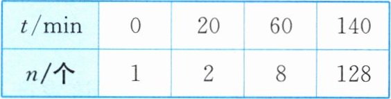 3. 某种细胞在正常培养过程中,时刻 $ t $(单位:$ min $)与细胞数 $ n $(单位:个)的部分数据如下表: