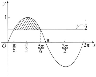 解:在同一平面直角坐标系中,作函数y = sinx(x∈[0,2π])的图象以及直线y = $\frac{1}{2}$,如图所示.