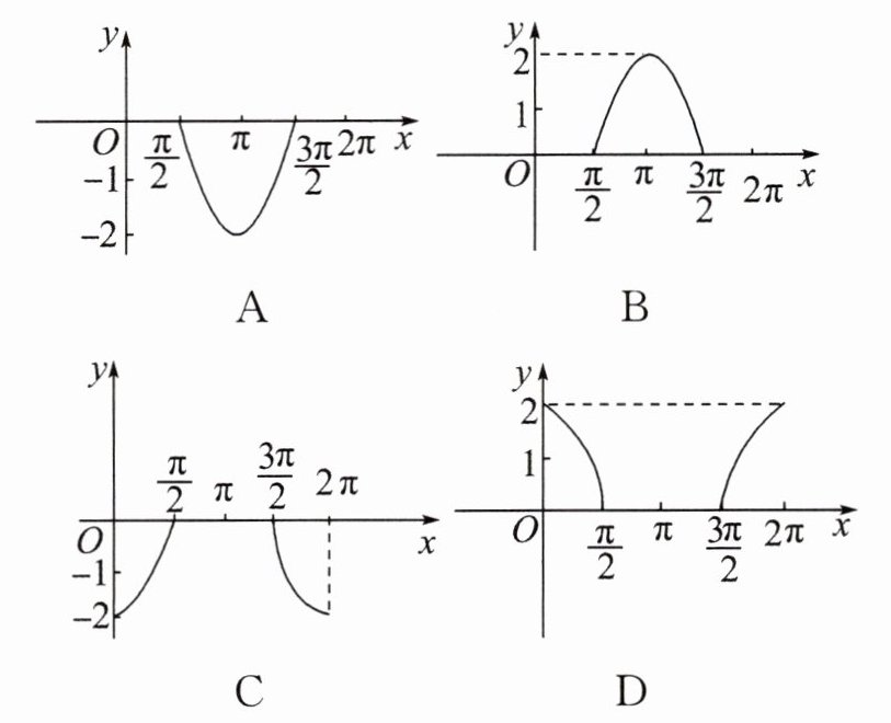 8. 函数$y = \cos x + |\cos x|(x \in [0, 2\pi])$的大致图象为( )