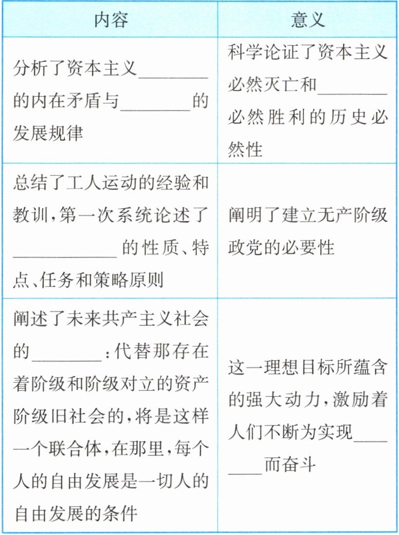 2.生产方式 人类社会 社会主义 无产阶级政党 理想目标 共产主义