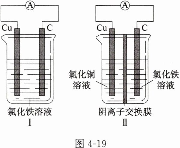 2. 已知电流效率等于电路中通过的电子数与消耗负极材料失去的电子总数之比。现有两个原电池,装置如图 4 - 19Ⅰ、Ⅱ所示。