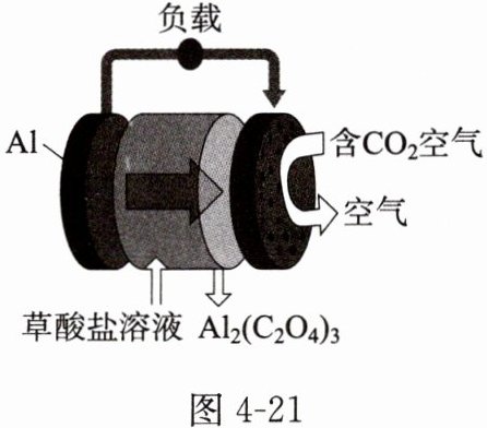 4. 碳呼吸电池的工作原理如图 4 - 21 所示。下列有关说法中正确的是( )。