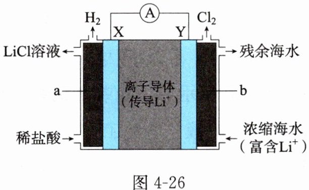 (2)浓差电池中的电动势是由于电池中存在浓度差而产生的。某浓差电池的原理如图 4 - 26 所示,该电池从浓缩海水中提取 ${LiCl}$ 的同时又获得了电能。