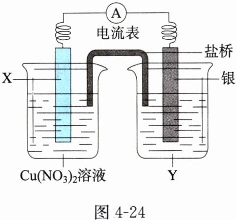8. 依据氧化还原反应 ${2Ag^{+}(aq) + Cu(s) = Cu^{2+}(aq) + 2Ag(s)}$ 设计的原电池装置如图 4 - 24 所示(盐桥为盛有 ${KNO_{3}}$ 琼胶的 ${U}$ 形管)。