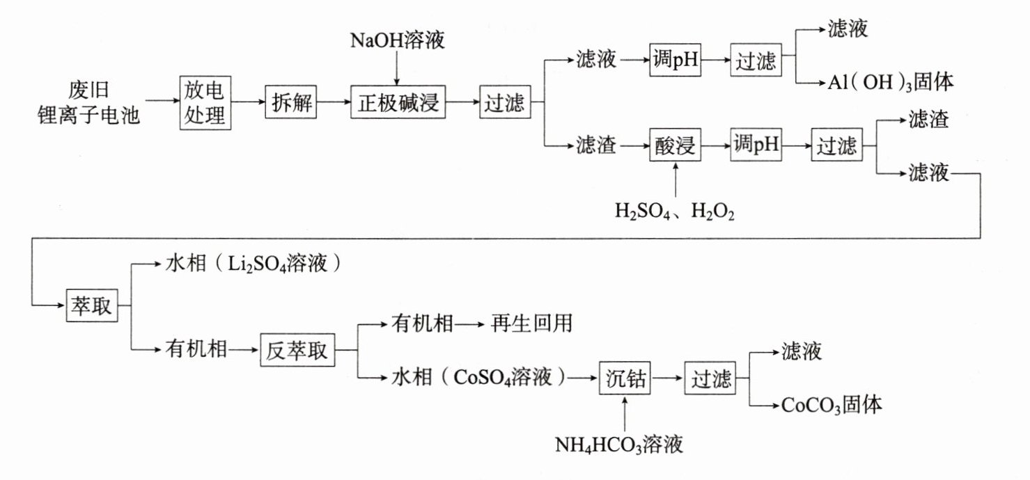 (6)Li⁺从负极中脱出,经由电解质溶液向正极移动并进入正极材料中 Al(OH)₃、CoCO₃、Li₂SO₄