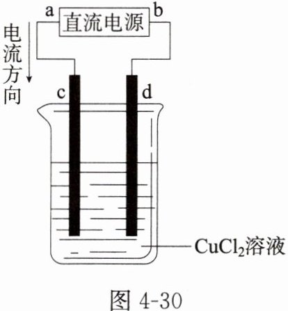 【例题 1】图 4 - 30 是电解 $CuCl_2$ 溶液的装置图,其中 c、d 为石墨电极,则下列有关判断正确的是( )。