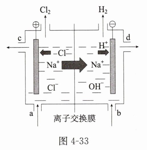 (2)图 4 - 33 是氯碱工业利用离子交换膜法电解精制食盐水的示意图,图中的离子交换膜只允许阳离子通过。