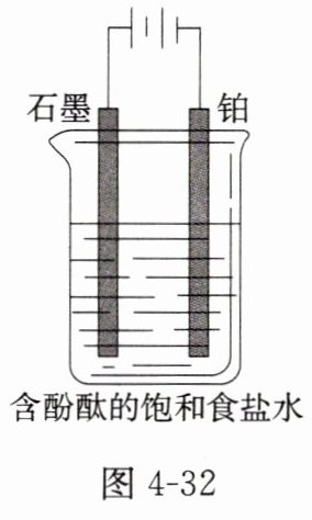 (1)电解饱和食盐水的装置如图 4 - 32 所示。