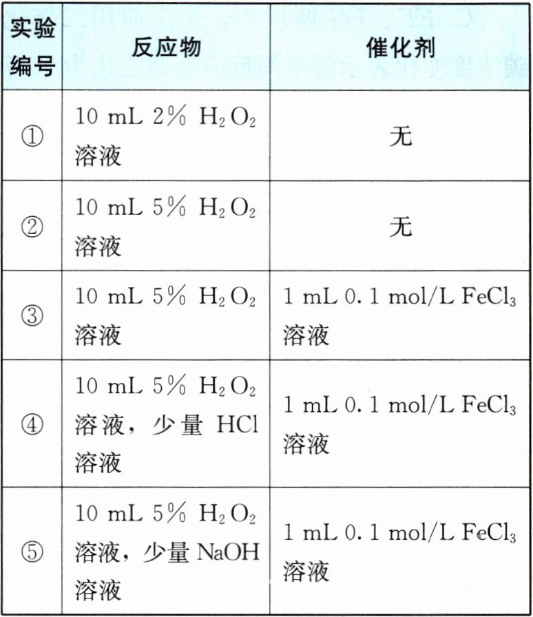 7. 某实验小组以H₂O₂分解为例,研究浓度、催化剂、溶液酸碱性对反应速率的影响,在常温下按照如下方案完成实验。