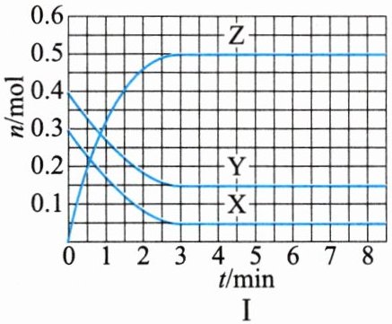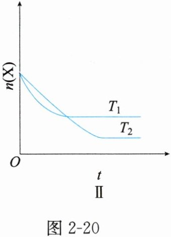 9. 温度为$T_{0}$时,在2L的密闭容器中发生反应$X(g) + Y(g)\rightleftharpoons Z(g)$(未配平),各物质的物质的量随时间变化的关系如图2-20Ⅰ所示。在其他条件相同,温度分别为$T_{1}$、$T_{2}$时发生反应,$X$的物质的量随时间变化的关系如图2-20Ⅱ所示。下列叙述中,正确的是( )。