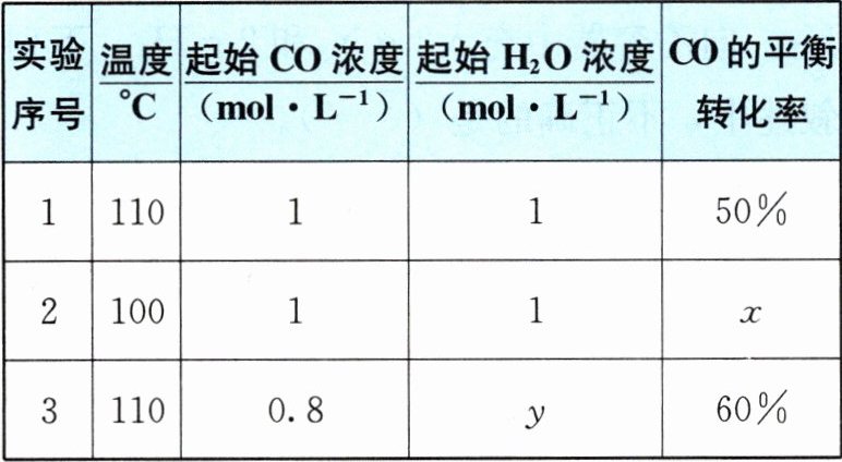 11. 在密闭容器中发生反应$CO(g) + H_{2}O(g)\rightleftharpoons CO_{2}(g) + H_{2}(g)$ $\Delta H<0$,该反应达到平衡后,测得如下数据。