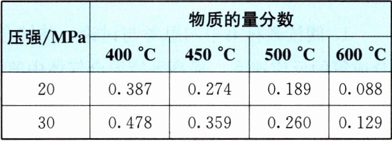 已知: $ {N_{2}(g) + 3H_{2}(g)\rightleftharpoons 2NH_{3}(g)} $ $ \Delta H = - 92.4\ {kJ/mol} $。起始反应物为 $ {N_{2}} $ 和 $ {H_{2}} $,物质的量之比为 $ 1:3 $,且总物质的量不变,在不同温度和压强下,反应达到平衡时,体系中 $ {NH_{3}} $ 的物质的量分数如下表所示: