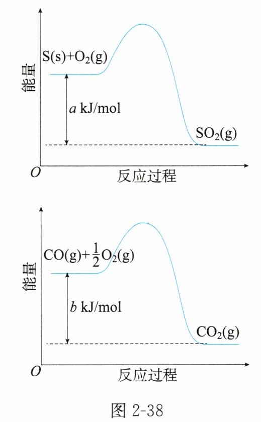 (2) $ {CO} $ 的治理问题是当今社会的热点问题。镍与 $ {CO} $ 反应的化学方程式为 $ {Ni(s) + 4CO(g)\rightleftharpoons Ni(CO)_{4}(g)} $, $ {Ni} $ 与 $ {CO} $ 反应会造成镍催化剂中毒。为防止镍催化剂中毒,工业上常用 $ {SO_{2}} $ 除去 $ {CO} $,生成物为 $ {S} $ 和 $ {CO_{2}} $。已知相关反应过程的能量变化如图 2 - 38 所示,则用 $ {SO_{2}} $ 除去 $ {CO} $ 的热化学方程式为________。