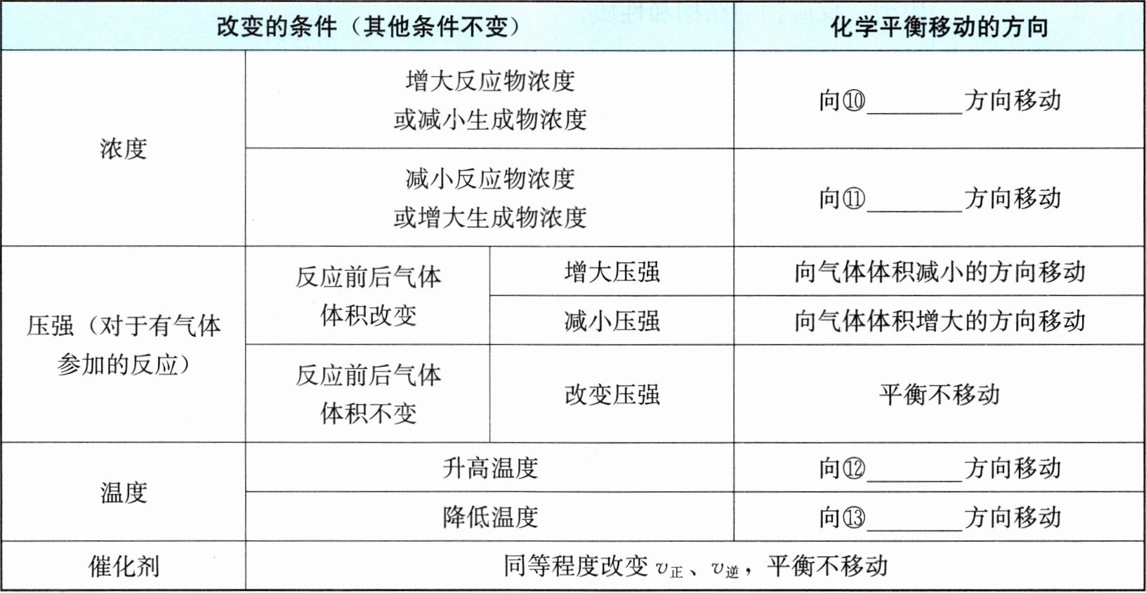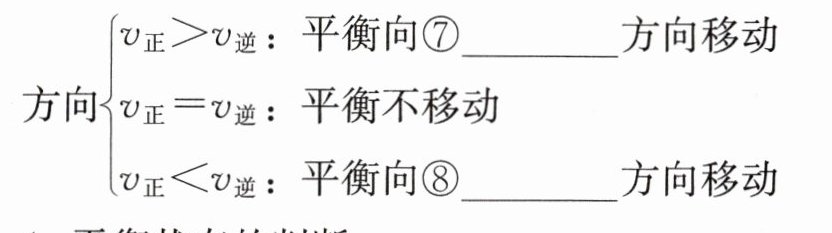 1. 概念:⑤可逆反应;⑥浓度;3. 平衡的移动方向:⑦正反应;⑧逆反应;4. 平衡状态的判断
