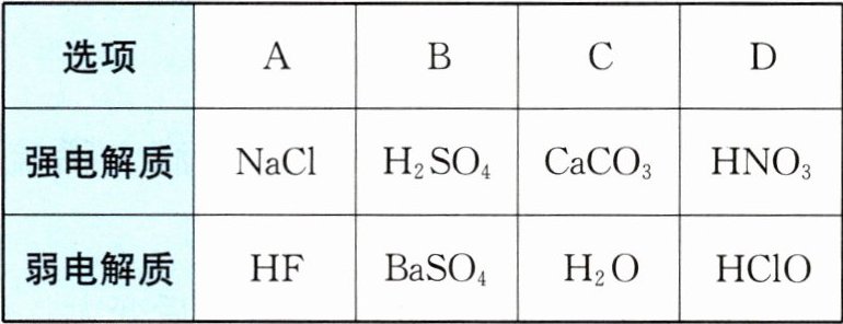 【例题 1】下表关于强电解质、弱电解质的分类中,不正确的是( )。