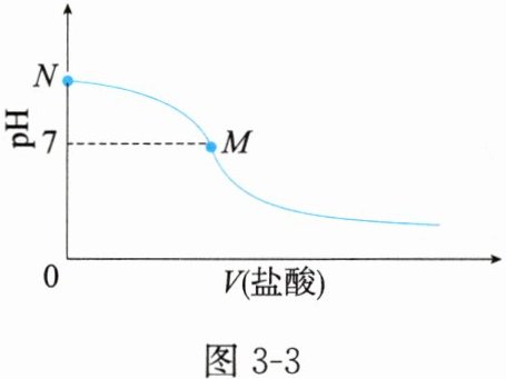 【例题 1】298 K 时,在 20.0 mL 0.10 mol/L 氨水中滴入 0.10 mol/L 盐酸,溶液的 pH 与所加盐酸的体积关系如图 3 - 3 所示。已知 0.10 mol/L 氨水的电离度(溶液中电离的电解质分子与电解质分子总数之比)为 1.32%,下列有关叙述正确的是( )。