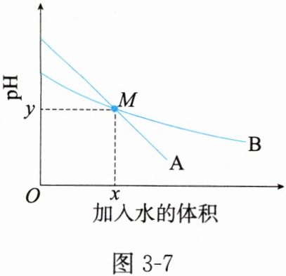 7. 常温下,pH 相差 1 的两种一元碱溶液 A 和 B,分别加水稀释时,溶液的 pH 变化如图 3 - 7 所示。下列说法正确的是( )。