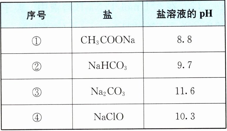 种盐溶液的pH如右上表所示。