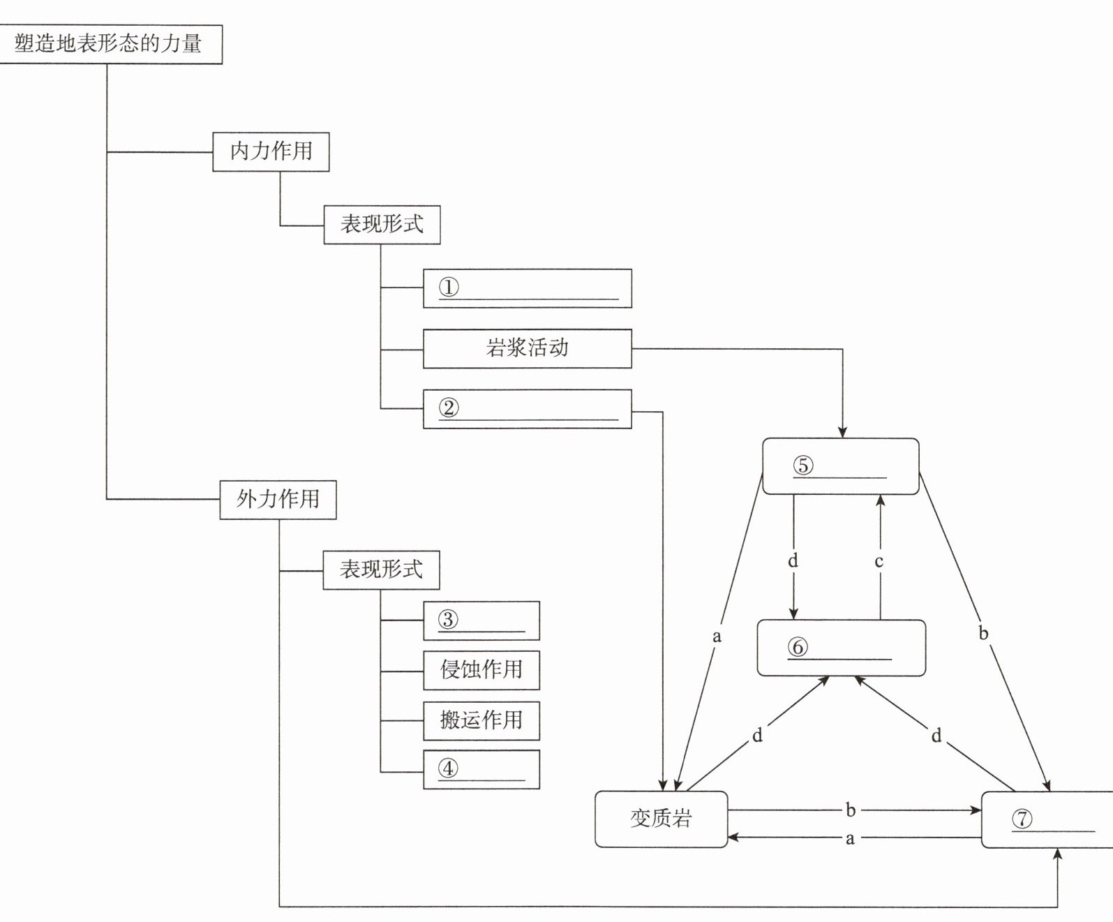 (3)导致喜马拉雅山脉形成和基拉韦厄火山喷发的地质作用均属于____,其能量来源于____,对地貌的影响最为深刻,奠定了地表形态的基本格局。