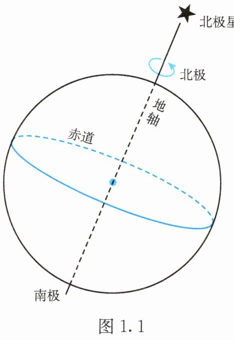 (1)图1.1中圆弧形箭头表示地球自转的方向是自______向______。如果从北极上空观察,其自转的方向表现为______时针;如果从南极上空观察,其自转方向表现为______时针。