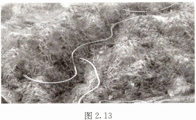 (1)图2.13所示路段大致沿______分布,原因是______,这说明公路选线受______因素的影响。