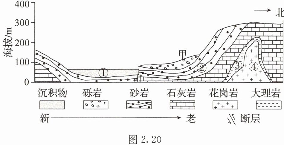 图2.20为某地地质剖面图。读图并完成下列要求。