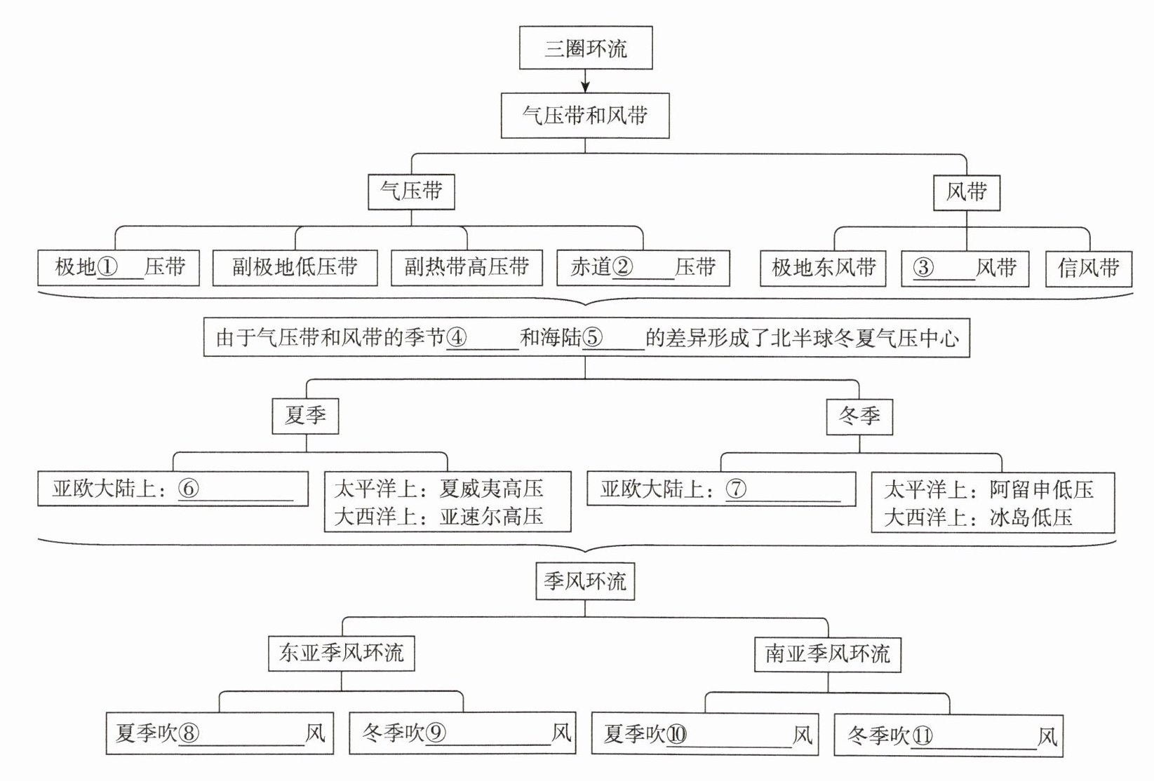 ①高 ②低 ③盛行西 ④移动 ⑤热力