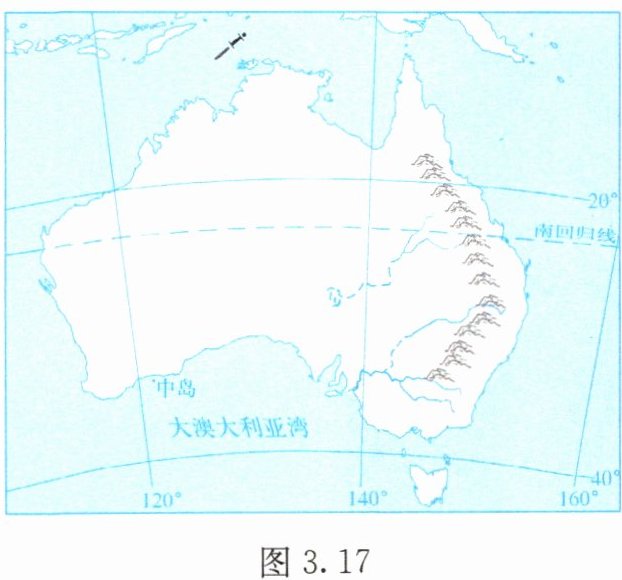 (2)冬季控制大澳大利亚湾的强劲大风的风向是( )