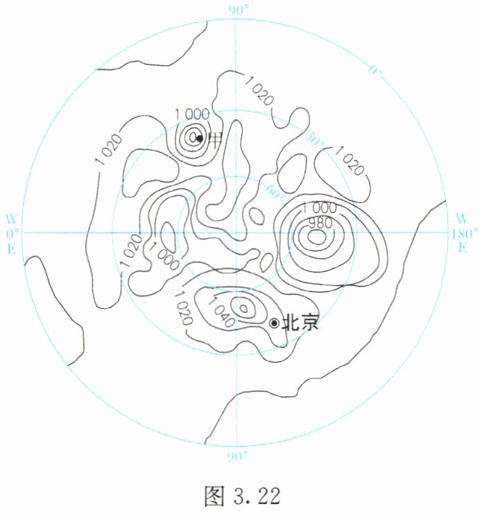 图3.22为北半球某日2时海平面气压分布图(单位:hPa)。读图并完成下列要求。