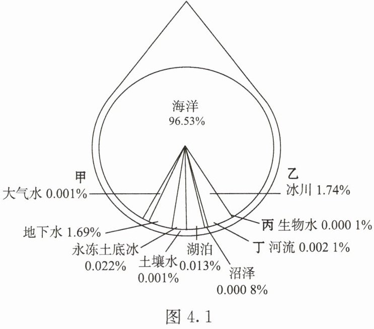 图4.1为水圈的构成示意图。读图并完成下列要求。