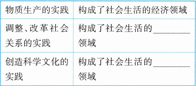 (1)实践生成了社会生活的全部领域,形成了全部社会关系,推动着人类社会的发展。
