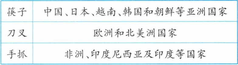 材料一 不同民族的饮食文化各具特色。以餐具为例,目前世界上人类进食的工具主要分为以下三类。