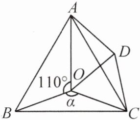 13. 如图,点O是等边三角形ABC内一点,$\angle AOB=110^{\circ}$,$\angle BOC=\alpha$. 以OC为一边作等边三角形OCD,连结AC、AD.