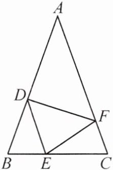 因为有两边相等的三角形是等腰三角形,所以$\triangle DEF$是等腰三角形。