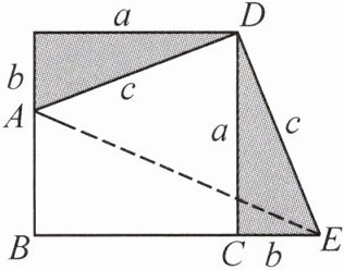 例2 如图是由两个全等的直角三角形与一个小直角梯形组成的,恰好拼成一个大直角梯形,能用来证明勾股定理,请你写出证明过程.