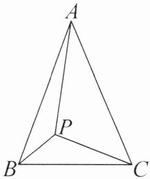 5. (推理能力)如图,点 $ P $ 是 $ \triangle ABC $ 内的一点,若 $ AB = AC $,$ \angle APB \neq \angle APC $。求证:$ PB \neq PC $。(用反证法证明)