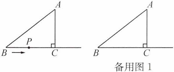 16. (12 分)如图,在 $ Rt\triangle ABC $ 中,$ \angle C = 90^{\circ} $,$ AB = 10 cm $,$ AC = 6 cm $,动点 $ P $ 从点 $ B $ 出发沿射线 $ BC $ 以 $ 2 cm/s $ 的速度移动,设运动的时间为 $ t s $.