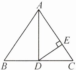 15. (12 分)如图,在 $ \triangle ABC $ 中,$ AB = 10 $,$ BC = 12 $,$ AD $ 为边 $ BC $ 上的中线,且 $ AD = 8 $,过点 $ D $ 作 $ DE \perp AC $ 于点 $ E $. 求线段 $ DE $ 的长.