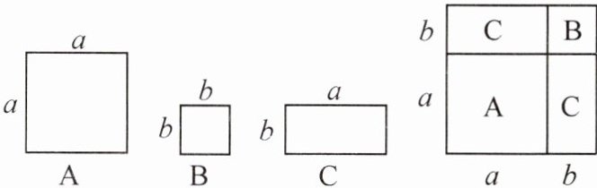 2. [2023·随州]设有边长分别为$a$和$b(a > b)$的 A 类和 B 类正方形纸片、长为$a$宽为$b$的 C 类长方形纸片若干张. 如图,要拼一个边长为$a + b$的正方形,需要 1 张 A 类纸片、1 张 B 类纸片和 2 张 C 类纸片. 若要拼一个长为$3a + b$、宽为$2a + 2b$的长方形,则需要 C 类纸片的张数为(