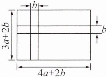 12. 某公园准备在一个长为$(4a+2b)$m、宽为$(3a+2b)$m的长方形草坪上修建两条宽为$b$m的绿色观光道路(如图),则道路的面积为