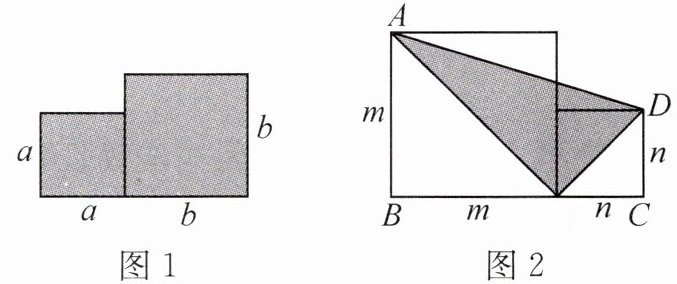 (1) 若 $a = 3$,$b = 4$,求图 1 阴影部分的面积;