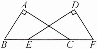 4. 如图,$\angle A = \angle D = 90^{\circ}$,$AB = DF$,$BE = CF$。求证:$\triangle ABC\cong\triangle DFE$。