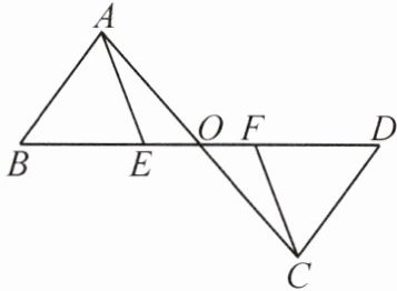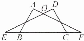 2. [2024 秋·瓦房店市期末节选]如图,点 $ E $、$ B $、$ C $、$ F $ 在同一条直线上,$ CF = BE $,$ AB = DC $,$ \angle ABC = \angle BCD $,$ AF $ 与 $ DE $ 相交于点 $ O $。求证:$ \angle A = \angle D $。