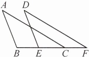 又因为$\triangle ABC\cong\triangle FED$,所以$\angle B=\angle E$(全等三角形的对应角相等)。