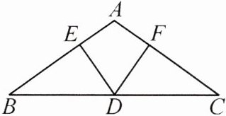 1. 如图,在△ABC 中,∠B = ∠C,过 BC 的中点 D 作 DE ⊥ AB,DF ⊥ AC,垂足分别为点 E、F。