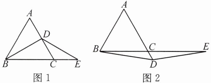 (2)如图 2,若点$D$在$AC$的延长线上,(1)中的结论是否成立?请说明理由.