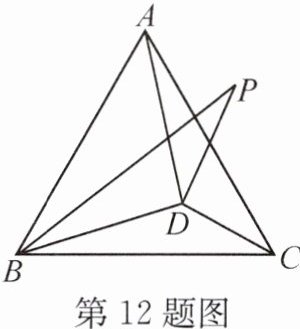 12. 如图,点 $ D $ 是等边三角形 $ ABC $ 内一点,且 $ DB = DA $,$ BP = AB $,$ \angle DBP = \angle DAC $.则 $ \angle P $ 的度数为