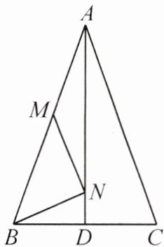 14. (14 分)如图,在 $ \triangle ABC $ 中,$ \angle ABC = 70^{\circ} $,$ AB = AC = 8 $,$ D $ 为 $ BC $ 的中点,点 $ N $ 在线段 $ AD $ 上,$ NM // AC $ 交 $ AB $ 于点 $ M $,$ BN = 3 $.