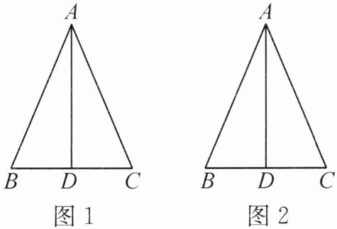 (2)接下来,他又想到一个问题:“如图2,若在$\triangle ABC$中,$AD$平分$\angle BAC$,$BD = CD$,则$AB = AC$”. 请你判断该问题是否一定成立,若一定成立,请你证明;若不一定成立,请说明理由.
