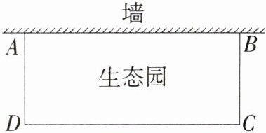 14. 2023 淮安 为了便于劳动课程的开展,学校打算建一个矩形生态园 $ ABCD $(如图),生态园一面靠墙(墙足够长),另外三面用 $ 18 m $ 的篱笆围成。生态园的面积能否为 $ 40 m^2 $?如果能,请求出 $ AB $ 的长;如果不能,请说明理由。